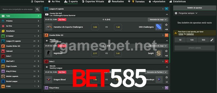 O bet585 oferece uma grande seleção de opções de apostas em e-sports com probabilidades competitivas